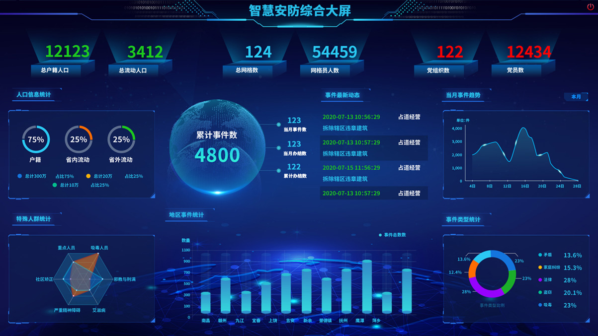 全方位立體式還原院區(qū)實貌,分圖層對院區(qū)的區(qū)域、建筑、單位、安防設(shè)備、管理設(shè)備、警情等進行查看、監(jiān)控和跟蹤;通過院區(qū)各類安防管理設(shè)備實時獲取各重點監(jiān)控區(qū)域的監(jiān)控數(shù)據(jù),對各種突發(fā)事件進行報警。通過人臉識別、車牌識別、行為識別、武器管理、營區(qū)設(shè)備等各類傳感器,對人、車、物及其行為的全面感知,保障營區(qū)安全。 -